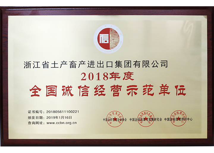 2018年度全國誠信經(jīng)營(yíng)示范單位(2018)