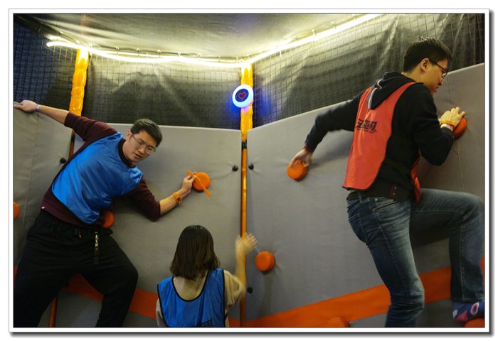 活動在室內(nèi)競技基地拉開帷幕,在教練的引導(dǎo)下,大家進(jìn)行了隨機(jī)分組,熱身和破冰運(yùn)動后,各種素質(zhì)拓展活動接踵而至,隊員們摩拳擦掌、斗志昂揚(yáng),開展了激烈角逐。在獨(dú)木橋?qū)管囕嗁愔?,隊長進(jìn)行戰(zhàn)術(shù)分配,場上隊員一對一全力比拼,場下同伴吶喊助威;真人CS比賽中,大家互相協(xié)助,分享經(jīng)驗;星際穿越跑酷中,面對錯綜復(fù)雜的路線和關(guān)卡,小伙伴們?nèi)翰呷毫?、攜手前進(jìn),利用團(tuán)隊智慧爭分奪秒,拼搏實力的同時加強(qiáng)了成員之間的合作與交流。